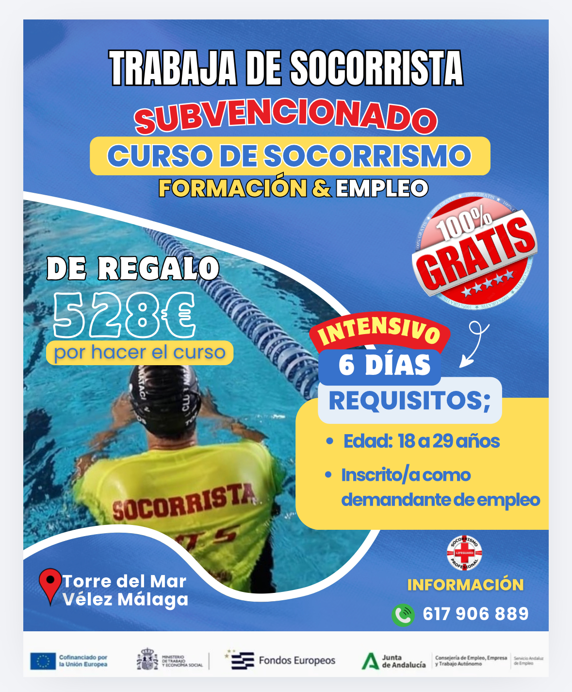Gracias al curso de socorrista nada más acabar empecé a trabajar, muchas gracias a esta gran empresa y a los grandes profesores que tienen